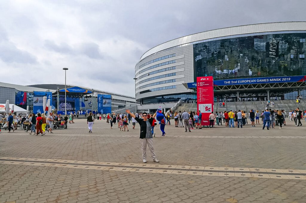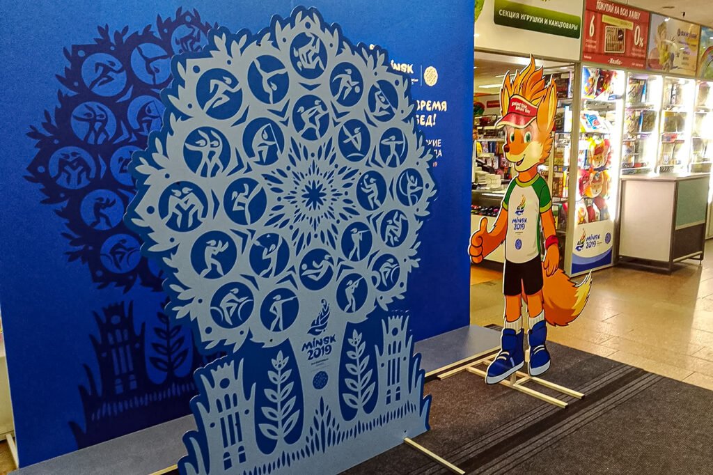במהלך הנסיעה התחלנו לקלוט כמה מינסק עיר ענקית (4 נתיבים לכיוון בחלק מהרחובות), וכמה היא מוכנה למשחקים. שלטי רחוב, פרסומות, קישוטים למינהם של הענפים השונים, אי אפשר היה לפספס שיש ארוע בעיר. בחלק מתחנות האוטובוס היה שילוט מיוחד שאומר איזה קו צריך לקחת כדי להגיע לאולם, וככה גם בתחנות מטרו. במהלך השבוע כשביקרנו בסופרים ראינו גם שיש מזכרות שונות ובקבוקי שתיה ושוקולדים ממותגים. זה אולי דברים קטנים, אבל זה נותן אווירה טובה ומכניס עוד קצת חוויות מהארוע.