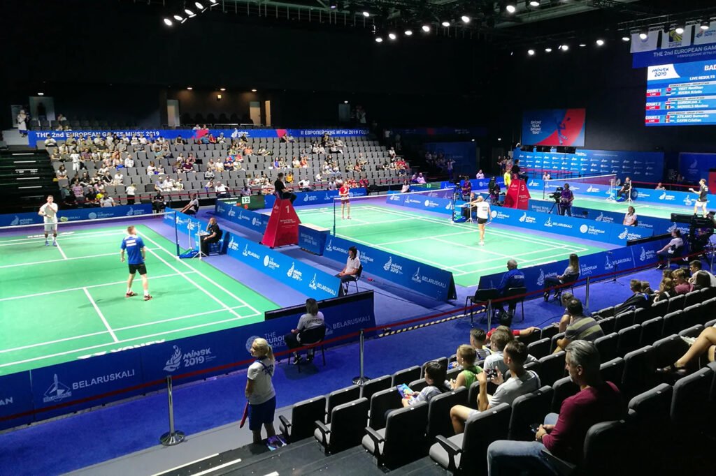 ביום רביעי היה לנו כרטיסים לבדמינטון, בהשתתפות מישה זילברמן וקסניה פוליקרפובה שיצא לי לראות אותה באליפות בחצור. האליפות נערכה באולם הפלקון, שבנוי בצורה של ציפור ממבט עילי. בבידוק הביטחוני הפעם החליטו להקשות עלינו, ובנוסף לחיפוש בתיקים ביקשו ממני לפתוח את המצלמה, להוריד מכסים מהעדשות (המאבטח הסתכל פנימה) ולצלם. ולא, להראות להם תמונות של יום קודם מהטרמפולינה לא הספיק להם. המשחק של מישה הוא הראשון בלו"ז לאותו יום, אז הגענו מוקדם וגילינו שאנחנו לבד ביציע. אבל ממש לבד. חוץ מאיתנו היה עוד בחור אחד וביציע ממול היו כמה מתנדבים וכמה משלחות, וזיהינו גם כמה מהוועד האולימפי של ישראל שבאו לעודד. בהמשך היום הצטרפו עוד כמה עשרות צופים, אבל לא יותר מזה. ודווקא באולם הזה, עם המעט מאוד צופים, ראינו שגם הביאו מנחה לעשות הפעלות לקהל. הוא היה משעשע, דיבר גם אנגלית וגם רוסית, וגם לפני תחילת המשחקים הראו סרטון קצר על הענף.