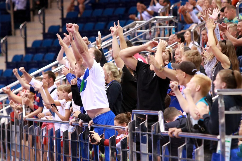 ישבנו ביציע עוד איזה שעה וראינו כל מיני משחקים, גם יחידים וגם זוגות, ראינו אנשים מתרסקים על כדורים, כדורים שנשברים באוויר ואז נוצות מרחפות להן בדרך למטה וקוונים שיוצאים עם מטאטא לנקות את המשטח. ואז רצינו לצאת לחפש משהו לאכול. שאלנו את המתנדבים והם אמרו לנו לקחת אוטובוס לקניון שתי תחנות משם. נסיעה באוטובוס אגב עולה 0.65 רובל. ואחרי כמה ימים במינסק גם הבנו שצריך לנקב את הכרטיס ולא רק לקנות אותו מהנהג. אז נסענו לקניון, ופתאום קלטנו שאנחנו ליד המינסק ארנה. לא היה לנו מושג שזה ככה קרוב האולמות, ובעוד כמה ימים נגלה שלא רק שהם קרובים, אלא שעל הרחוב הראשי שבו נסענו היו 6 מהאולמות של האליפות. תחשבו על זה – 6 אולמות ספורט גדולים במרחק של כמה קילומטרים בודדים זה מזה. לא סתם מינסק זכתה באירוח. הסתובבנו קצת בקניון, ניסינו להזמין אוכל מאנשים שלא מבינים מילה באנגלית, אכלתי שוב צ'יפס, וחזרנו לבדמינטון. המשחק של קסניה היה ב-15:00, וגם היא הציגה יכולת טובה, ניצחה וסימנה לנו תודה עם היד. הפעם כשצילמתי הגיע בחור (חילופי משמרות?) ושאל אותי מה אני עושה, חזרנו על הסיפור והמשכתי לצלם.