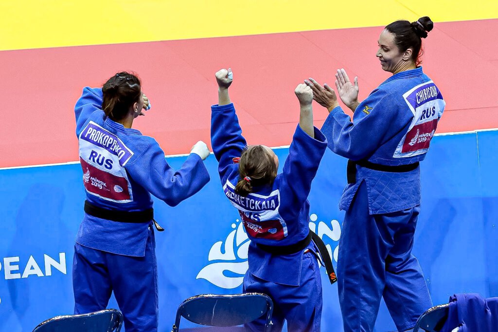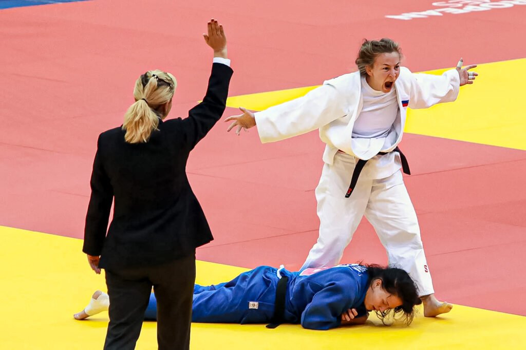 אחרי שביררנו אם הבשר זה קוריצה (תרנגולת ברוסית), הזמנו לי צ'יפס ולאמא טורטיה עוף. מה חשבנו שנקבל – טורטיה עם קצת ירקות ועוף בפנים. מה קיבלנו – שתי חתיכות עוף גדולות שבדיוק ירדו משיפוד. זה היה די משעשע. הם גם שקלו את זה, והראו לנו שנראה שמה שקיבלנו זה בסדר. ישבנו בשולחנות המוצלים והעברנו קצת זמן עם המקומיים שבאו סתם להנות מהאווירה במתחם, ואז חזרנו לאולם לקרבות הגמרים. הבלארוסים החביבים מפסידים בקרב על הארד ונשארים מחוץ לפודיום, וגם ההולנדים שמהבוקר נראו מאוד חזקים נשארו בלי מדליה. הגמר הפגיש בין רוסיה הפייבוריטית שלקחה מדליה כמעט בכל משקל עד כל באליפות לבין פורטוגל. הפורטוגלים מפתיעים ועולים ליתרון 3-0, ניצחון אחד מהזהב. אבל הרוסים משווים, ואנחנו הולכים לקרב מכריע. הלחץ הורגש באוויר והקרב היה לא ברמה גבוה, שני הג'ודוקא היו עייפים מאוד, והוא הוכרע רק אחרי 4 דקות בניקוד זהב (נחשב הרבה זמן לקרב) לטובת הרוסים. הקהל שלהם היה בטירוף.
