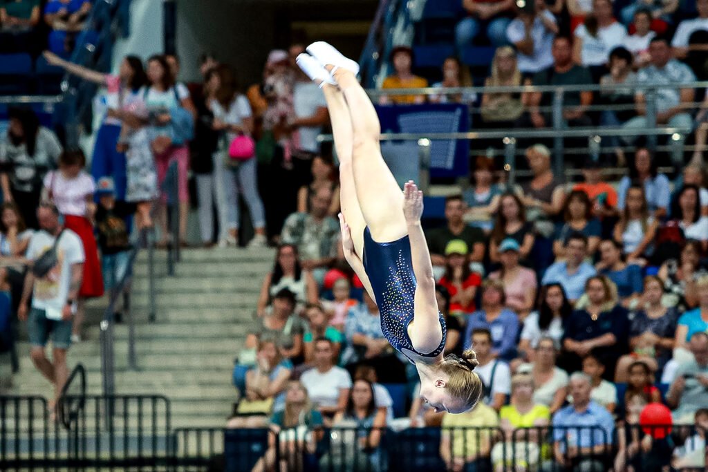המינסק ארנה היה הרבה יותר גדול מהאולם של הג'ודו, וגם מתחם ה-FAN ZONE שלו יותר גדול. בנוסף לאוכל, היה גם תצוגה של כל מיני דברים (כמו טרקטור אדום) ודוכנים של חברות שונות. כבר במתחם הרגשנו שיש שם כמות הרבה יותר גדולה של אנשים, והיציעים היו די מלאים בחלק התחתון של האולם. הכיסאות שלנו היה ממש על המשטח של האירוביקה, שורה מעל השופטים. היה די קל לצלם את זה, אבל זה לא היה ממש אטרקטיבי. את הטרמפולינה היה מאוד קשה לצלם, גם בכלל המרחק וגם בגלל המהירות שהם זזו. בטרמפולינה ראינו גמר של זוגות נשים וגמר של גברים. היו כמה התרסקויות וגם כמה תרגילים יפים, והבלארוסים לקחו את הזהב פעמיים לקול תשואות הקהל.