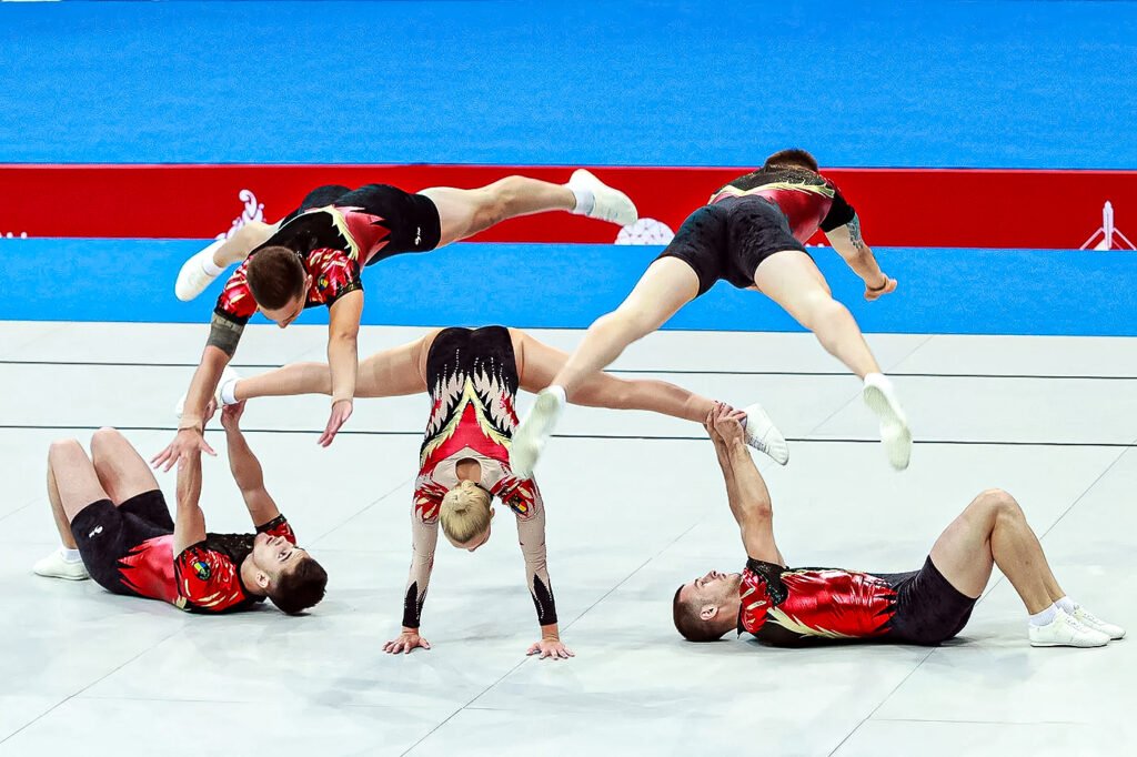 נפרדנו מענף הג'ודו שסיים את התחרויות שלו, והמשכנו הלאה לקצה השני של העיר למינסק ארנה, מרחק של חצי שעה נסיעה בערך, להמשך היום שלנו. היה לנו כרטיסים לגמר של תחרויות הטרמפולינה והאירוביקה. עכשיו טרמפולינה זה נחמד, דומה להתעמלות מכשירים. אירוביקה זה מפגר. זה נראה כמו תחרות של מעודדות. קחו את קטעי הקישור הקטנים שעושים המתעמלים על הקרקע, תוסיפו מוזיקה וקצת קפיצות, זה מה שקיבלתם. מעפן ברמות. למה נסענו לזה? כי חשבתי שאני קונה לאמא כרטיסים לתחרות של האקרובטיקה שהיא אוהבת. אופס.
